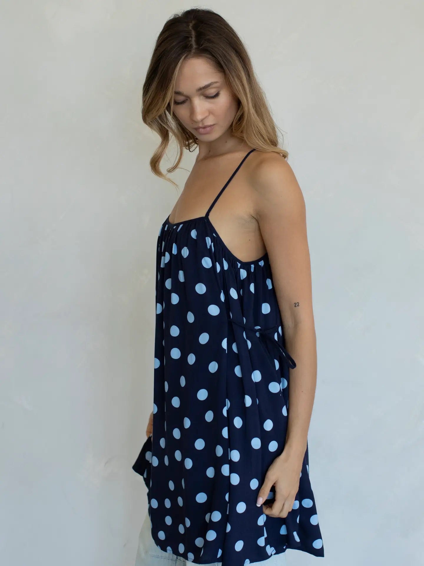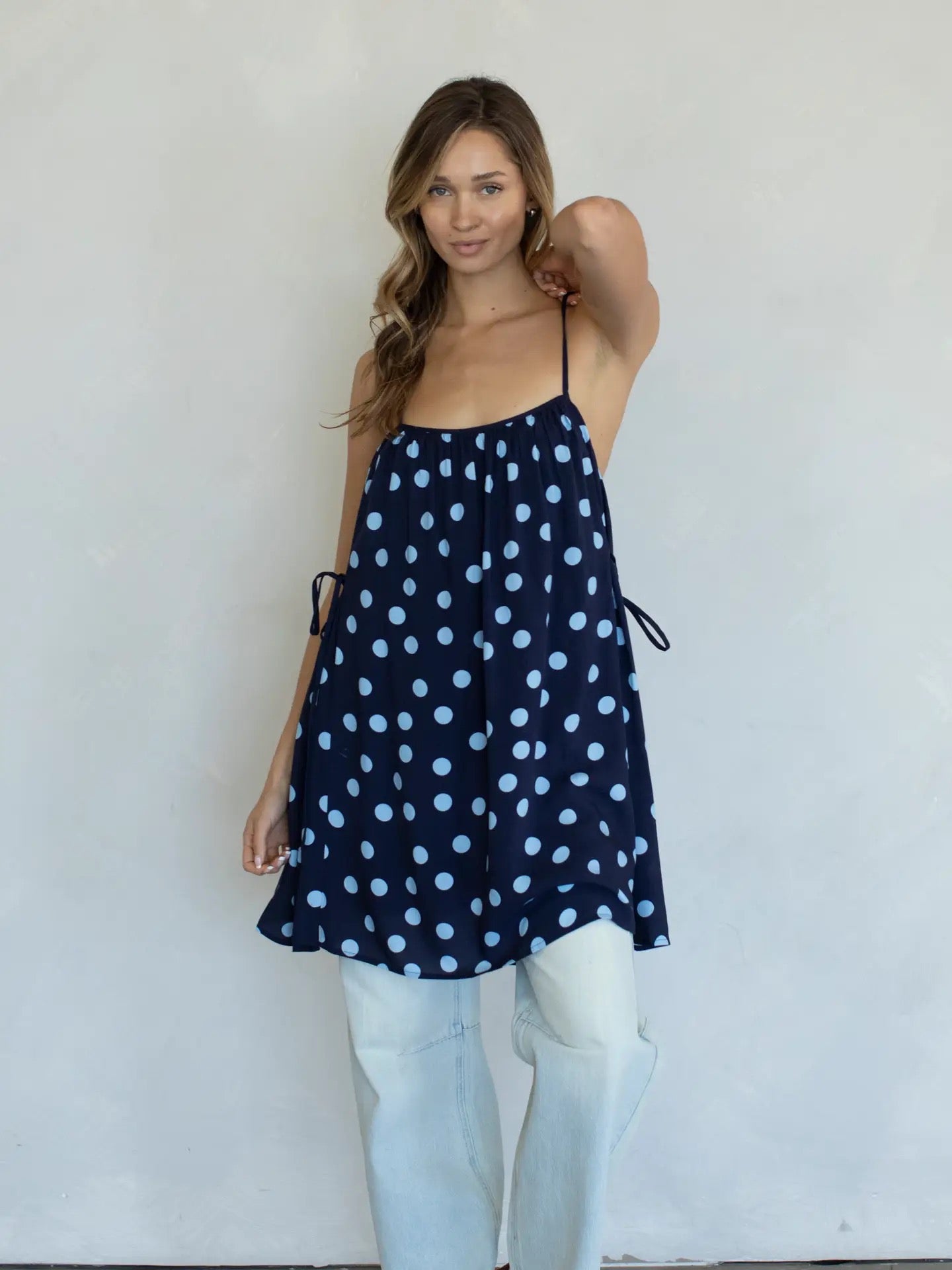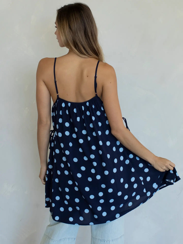 Designed in a playful polka dot print, this mini-length style brings effortless charm to any day. With spaghetti straps and a relaxed fit, the Lulu dress drapes beautifully and moves with you, giving that easy, carefree feel we can’t get enough of.