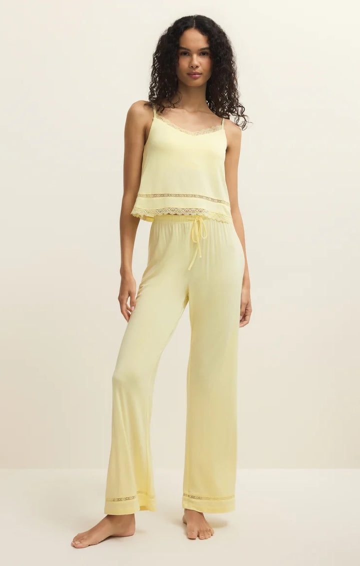 This full-length pant moves with ease with its flowy silhouette and soft drape. Finished with a drawstring waistband and lace hem detail, it’s our go-to style for relaxing in style.